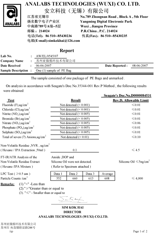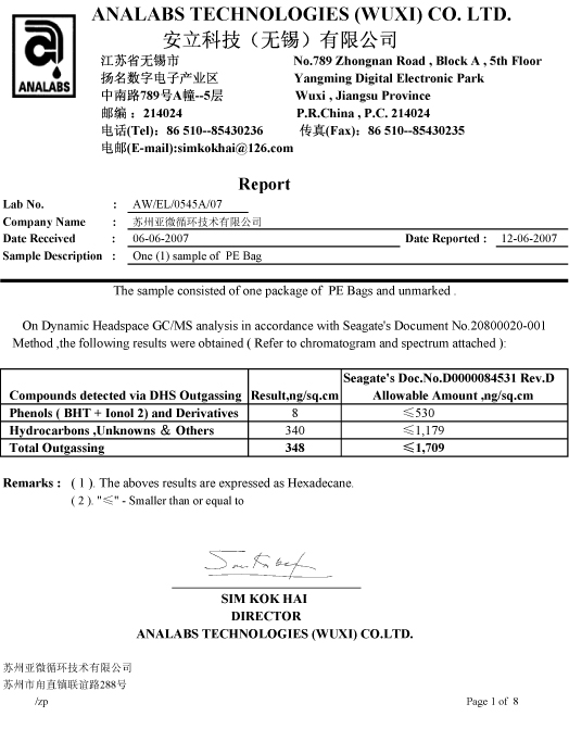 本公司自2004年起就為邁拓科技蘇州有限公司,希捷科技等國(guó)際知名硬盤(pán)生產(chǎn)廠(chǎng)商及其配套供應(yīng)商提供專(zhuān)業(yè)無(wú)塵車(chē)間高潔凈度PE包裝袋。