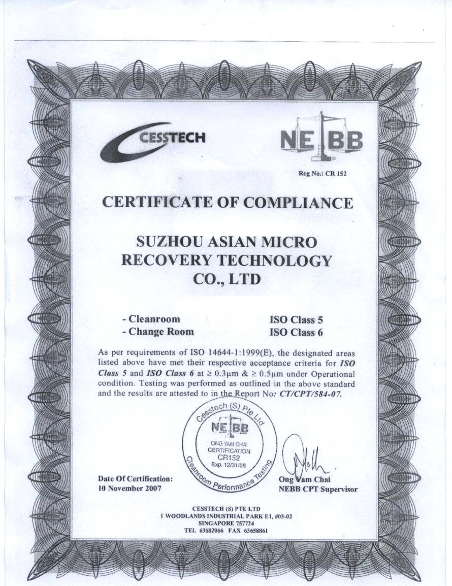 蘇州亞微循環(huán)技術(shù)有限公司,是一家新加坡獨(dú)資企業(yè), 在無(wú)塵車(chē)間進(jìn)行生產(chǎn)加工